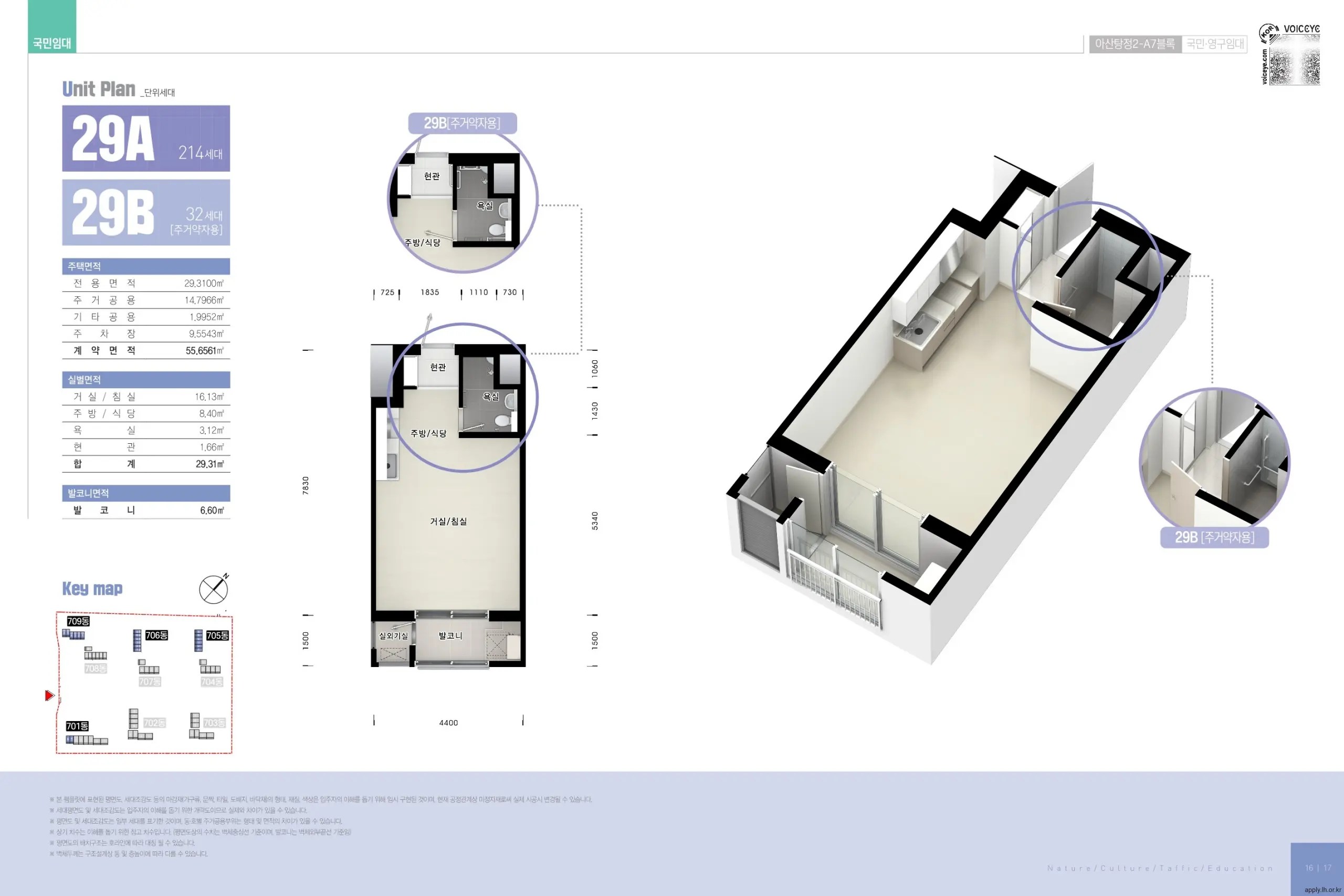 공급/전용 면적 | 44.1066㎡ / 29.31㎡ 13.34평 / 8.87평 29A형 214세대와 29B형(주거약자용) 32세대가 있습니다. 주거약자용은 주거약자를 위한 편의시설이 설치되어 있는 주택입니다. 주거약자란? 고령자(만 65세 이상), 장애인, 국가유공자, 보훈보상대상자, 5·18민주화운동부상자, 고엽제후유의증환자를 말합니다. |